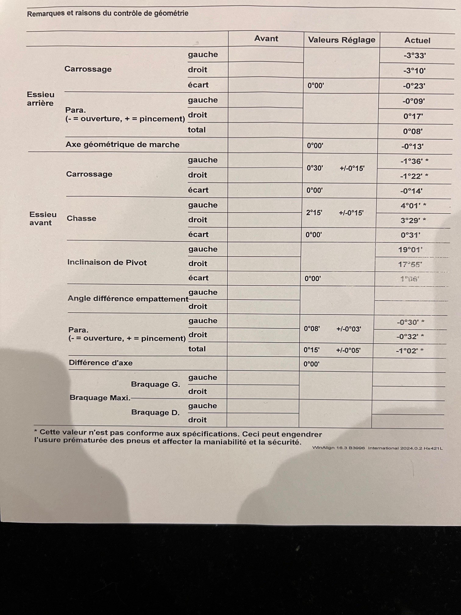 Le reglage du train avant est tout bon, a l'arriere ca me plait tjs pas mais impossible de faire mieux sans modif des lames, prévu apres la dinde qui aura été fourrée et digérée