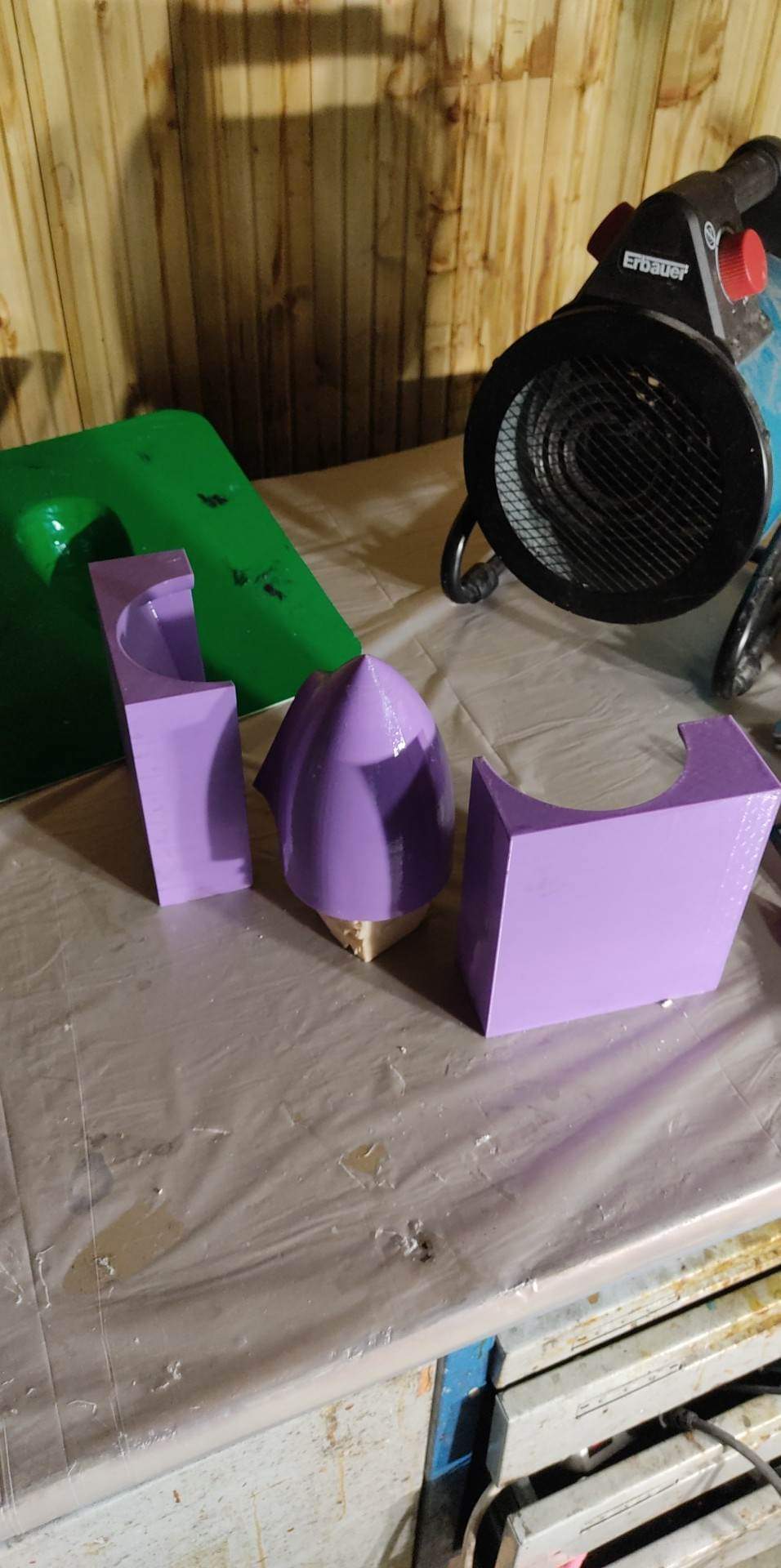 20 h par demi coquille. Paroi 3 couche et remplissage a 15% c est suffisant. Faut que j achete des buses plus grosse pour gagner du temps sur les print. Tres intéressant l impression 3d pour ce genre de travail. Ça évite de faire un master, en revanche faut maîtriser le dessin 3d ce qui n est pas mon cas, j y ai passer un peu d heures là dessus.