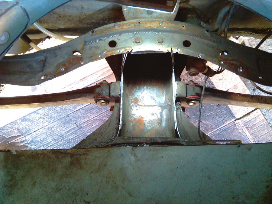 la traverse a un angle de chaque côté entre le châssis et la coque pour laisser passer un réservoir tampon