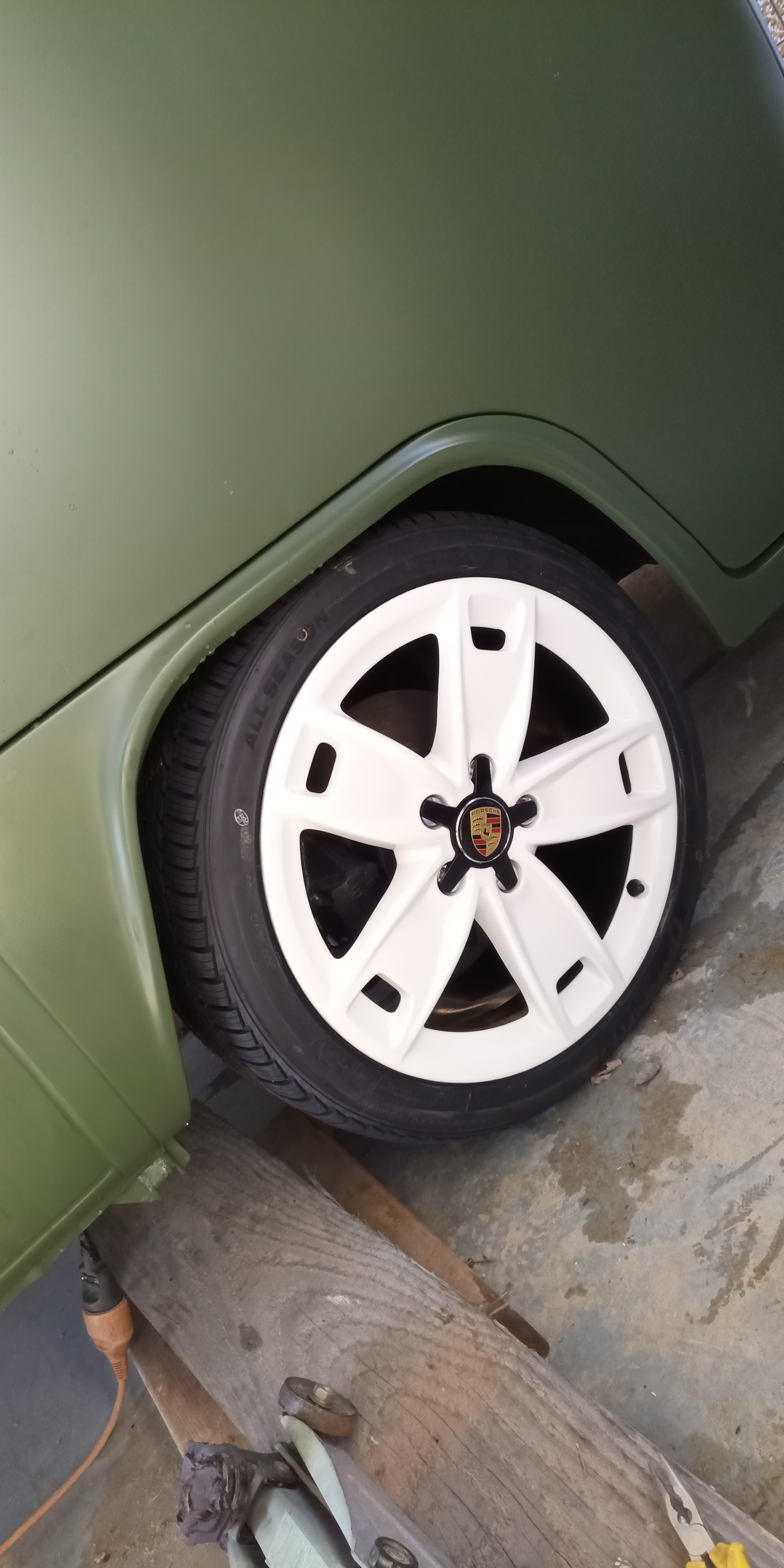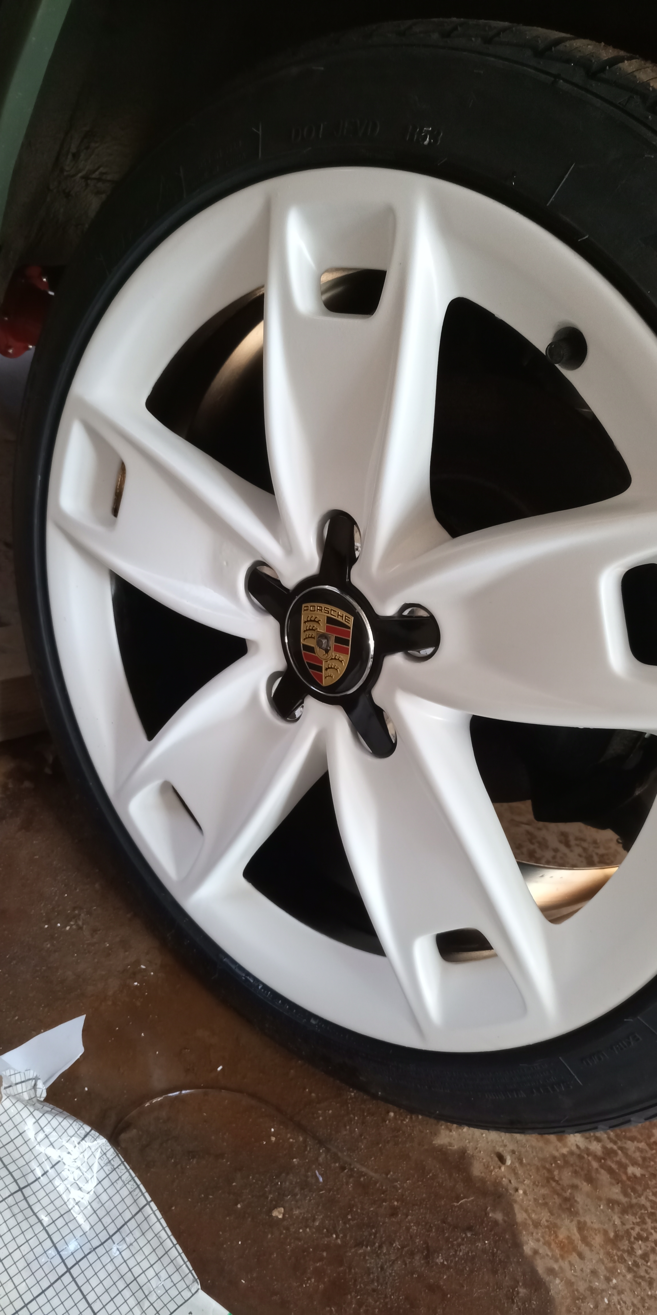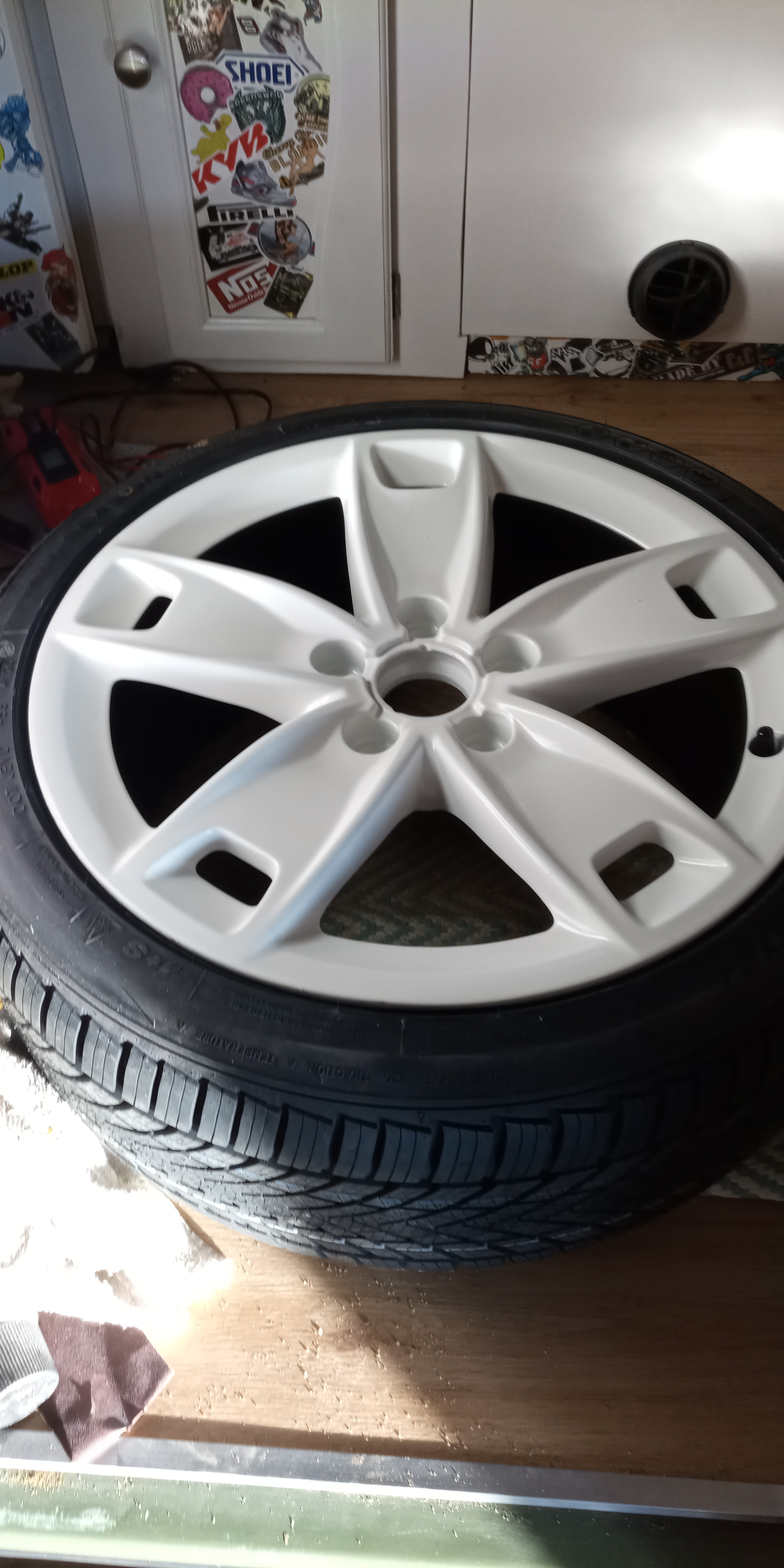Bon aller juste une petite photo pour Alex voir si sa lui convient les jantes sont pas nickel peinte en extérieur mais bon pour ce que sait faire rouler sa va bien le faire surtout pour le prix des jantes qui seront peut être pas la éternellement ...
