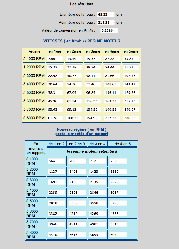 là, en 205/50/17 avec les rapports de boite je suis comme ça, ca reflete exactement les vitesses réelles a confirmer pour la Vmax pas testé, mais a 110 compteur (103 reel) je suis a 4000 trs, j en ai discuté avec Victor justement aujourd hui 225/50/18 ou 225/45/18 derriere ?