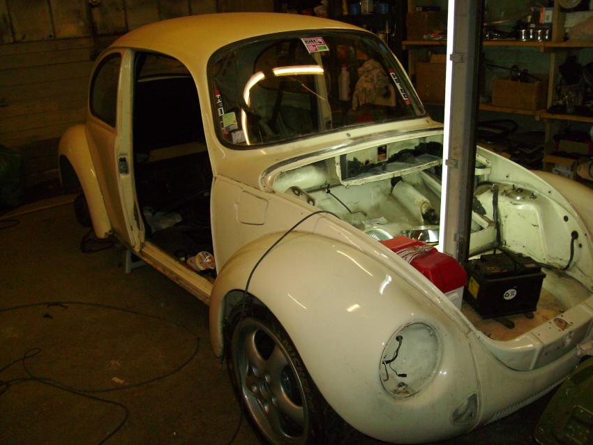 L'arceau est monté et tant qu'à faire autant repeindre l'auto! Au programme juste une extérieur + compartiment moteur pour faire propre, plusieurs points de rouille fesaient leur apparition ainsi que plusieurs retouches de teintes différentes sans parler des coups et éclats (faut que j'arrête de me sortir dans les bacs à gravier!) donc rien d'un showcar au programme.