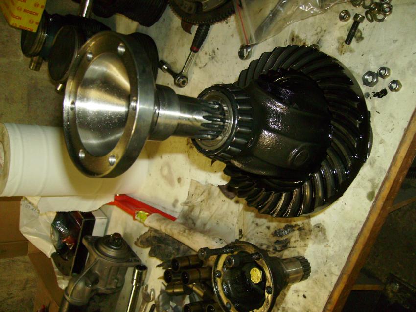 Mais c'est pas tout, la boite pissait l'huile par les joints spi de tulipes, alors on démonte le diff pour changer tous ces petits joints et on en profite pour installer des tulipes Martin Bott en 100mm pour accepter des cardans plus gros juste pour plus me faire charier avec mes cardans :-D Mais bon ben comme le montre la photo ça se monte pas, les tulipes ne rentrent pas dans le différentiel, alors elles sont parties faire un tour chez l'usineur, 2 fois même...