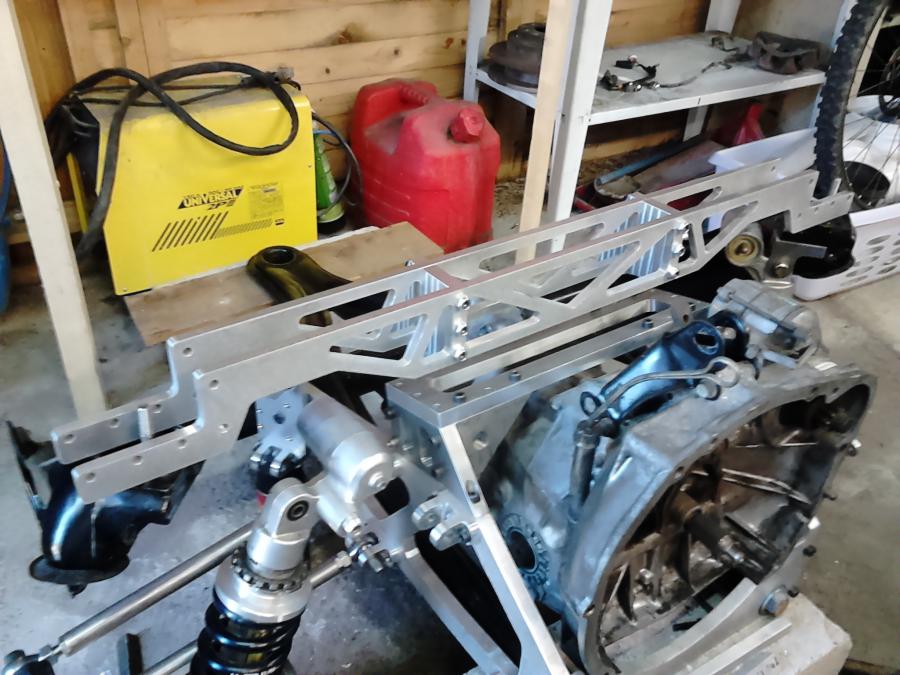 en vrac , le montage de la boite est quasiment finalisé , les fixations sont finies , tous les points d ancrage sont ok , je vais rajouter une ceinture au cas ou , et le carter de de boite raccourcie du pont central , il me faut lui faire des bouchons et un peu de soudure