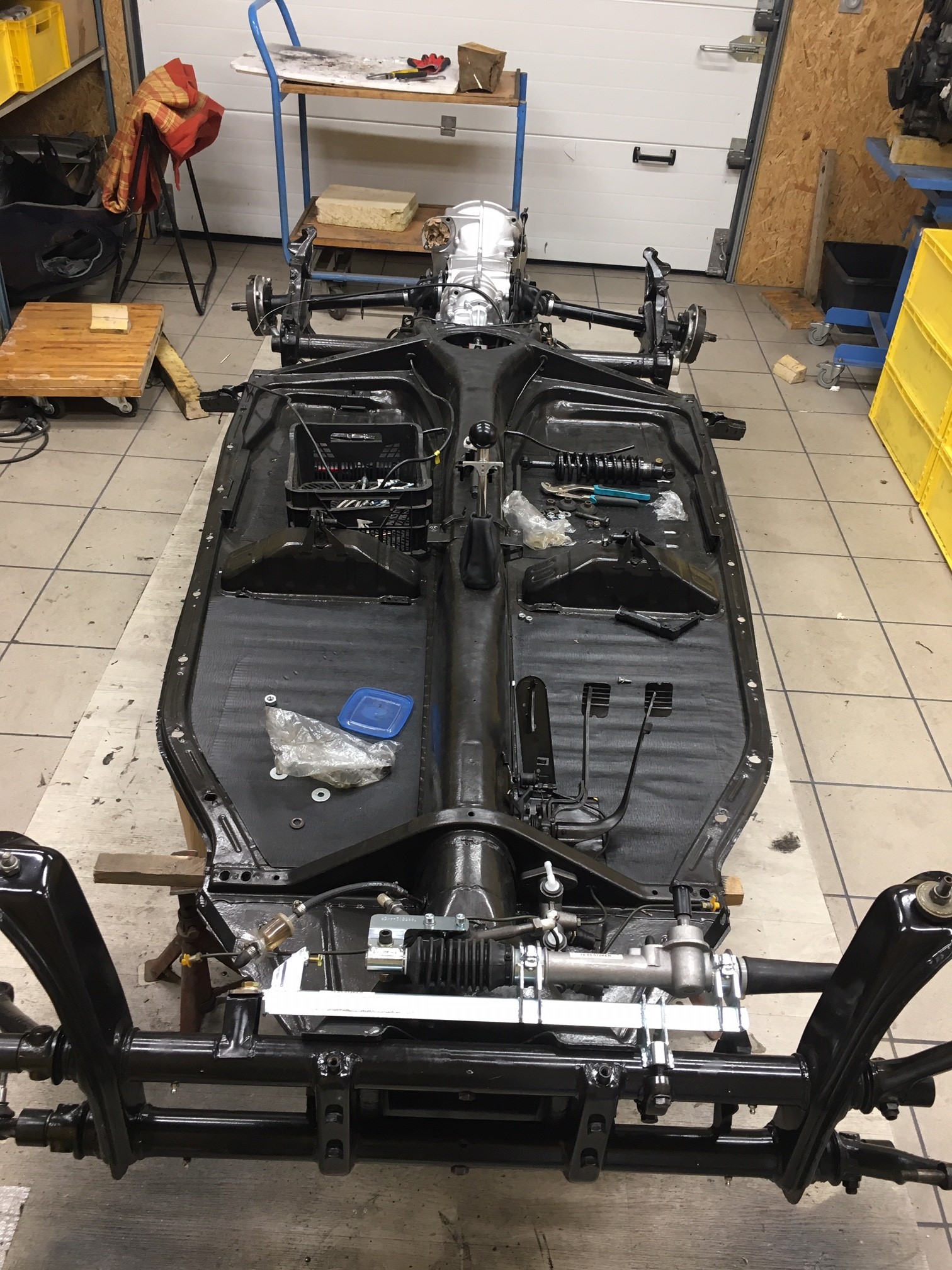 Voici quelques photos, rien d’original pour l’instant, les étapes les plus excitantes commenceront bientôt avec les modifications de la carrosserie, le montage du nouveau train avant et amortisseurs, freins Porsche 944 P1, etc…
