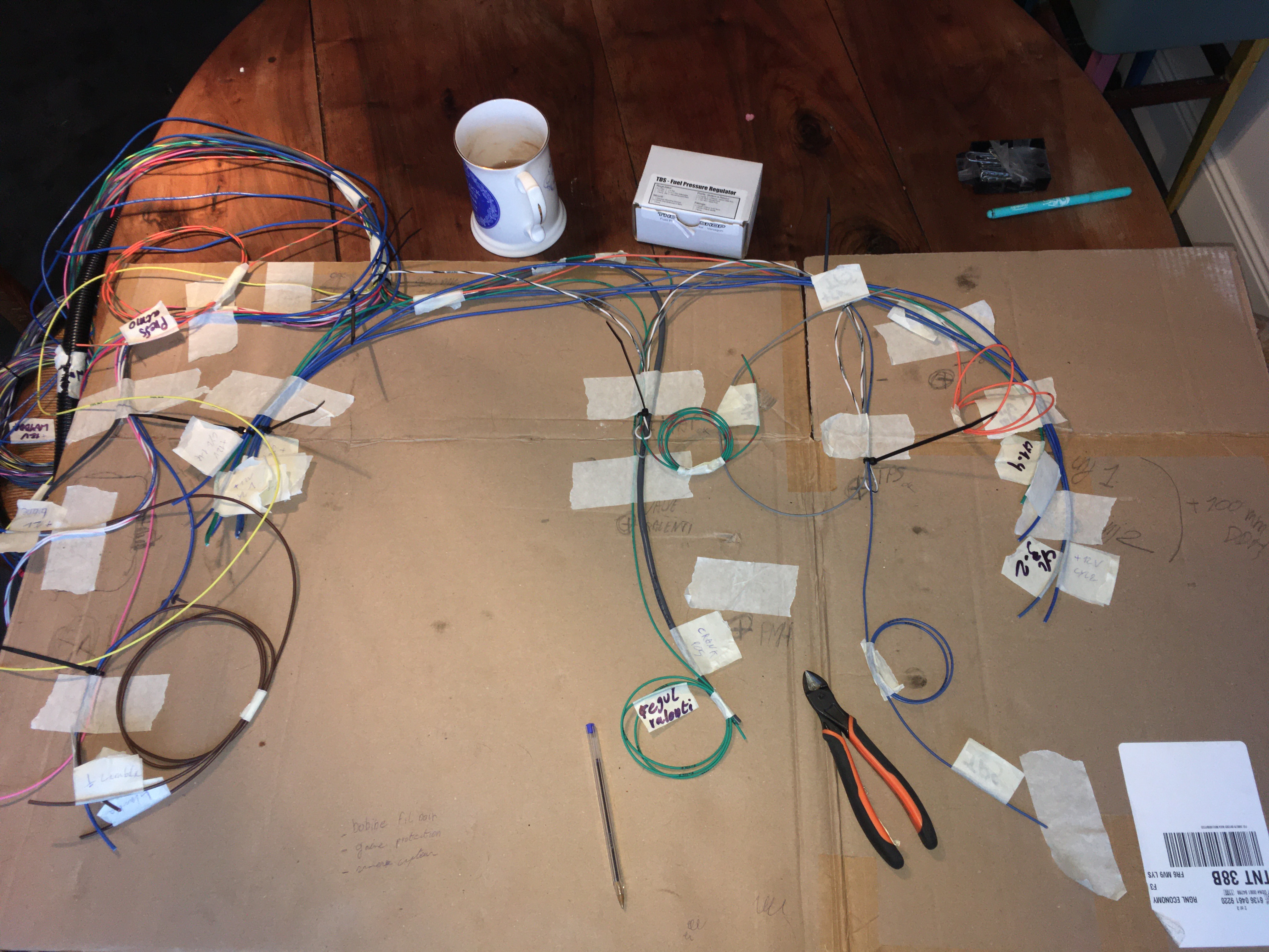 J’ai fait un croquis sur un carton avec l’emplacement des capteurs sur le moteur pour pouvoir faire le faisceau.