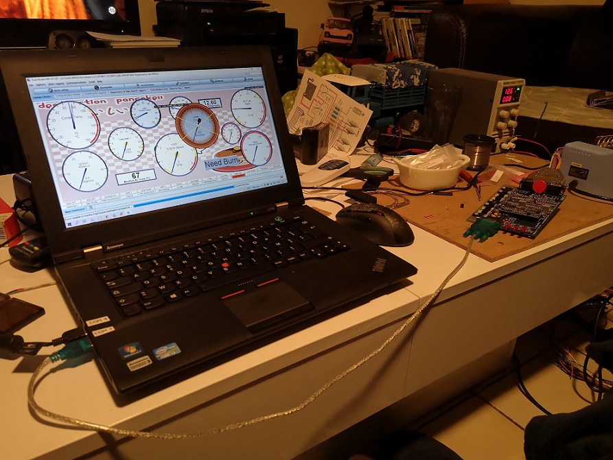 J’ai pu mettre sous tension ce soir, pour prendre en main tunerstudio. J’en ai profité pour calibrer la sonde lambda et régler le tps, les capteurs de température et pression réagissent donc c’est cool.