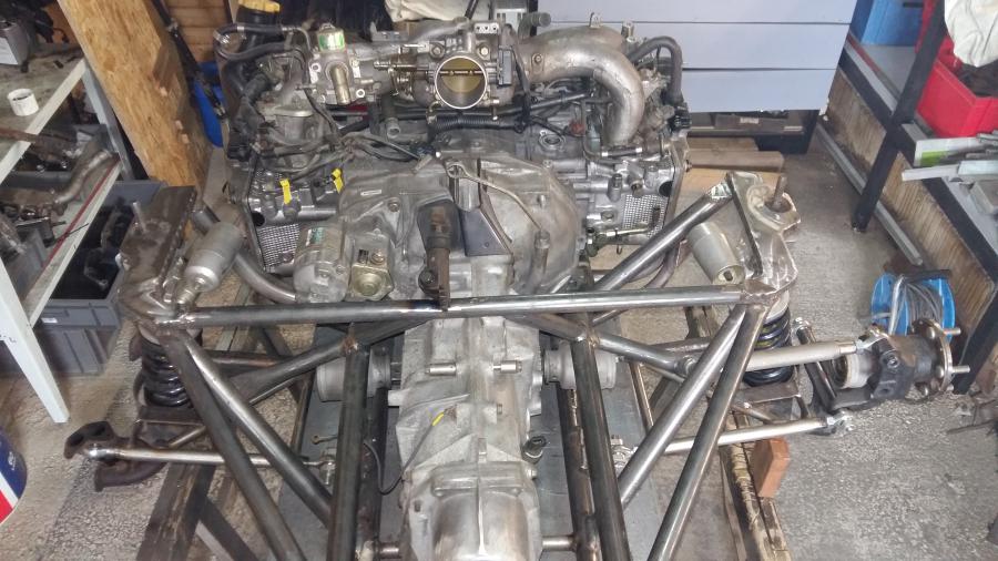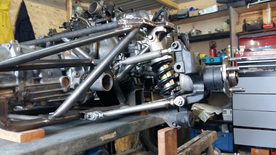 je me suis inspiré de se qui se fait en wrc , des berceaux tubulaire ou sont fixés les boites et les ponts , j enlève 6 vis M12 et le tous descend