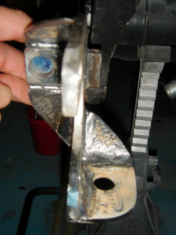de la lame après le le filetage (gros carré) pour passer derrière le bras comme sur les kits avec les pattes alu on vois bien le gros déport