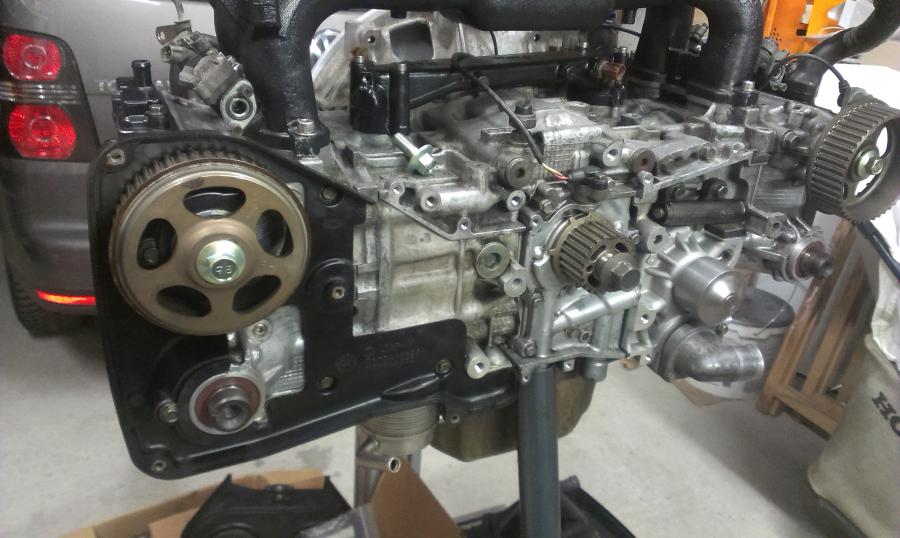 Et bien je pense que ce moteur a déjà eu une réfection, car cela m'étonnerai que chez subaru, ce soit d'origine fait comme des sagouins! Un joint pincé, et une tonne de pate qui gerbe sous la pompe à huile et les couvres-culasses. Je parle pas des supports de joints spi d'AAC... Voilà déjà un coté nettoyé et remonté avec les joints neufs, c'est mieux. Première pièce refaite à prendre place, ce qui signifie que je commence le remontage...