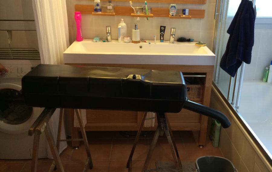 Hier C'était traitement du réservoir en mode hiver avec séchage au sèche linge familial ...
