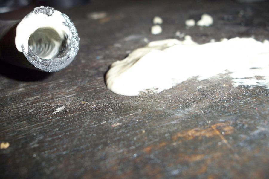 démontage du moteur tanto pour vérif , en démontant les cache culbu j ai trouvé plein de mayonaise blanche , et regardant les durites qui vont des culbus a la boite de reniflard voila ce que j ai trouvé dedans ......
