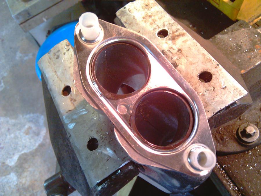 Les deux pipes sont faites, bien alignées aux culasses, malheureusement, il m'a été impossible