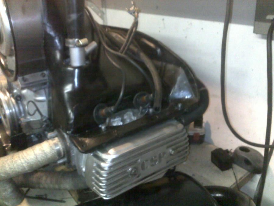 la coiffe est finie tant que j'y étais a la couper dans tous les sens j'en ai profité pour "intégré" les tôles couvres cylindre d'origine comme ça je remonte toutes les tôles périphériques sans autres modification.
