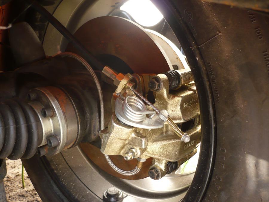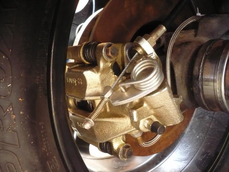 - Une version avec le ressort de frein à main qui se monte vers le bas et dont la vis de purge se trouve en haut (ce que j'ai)