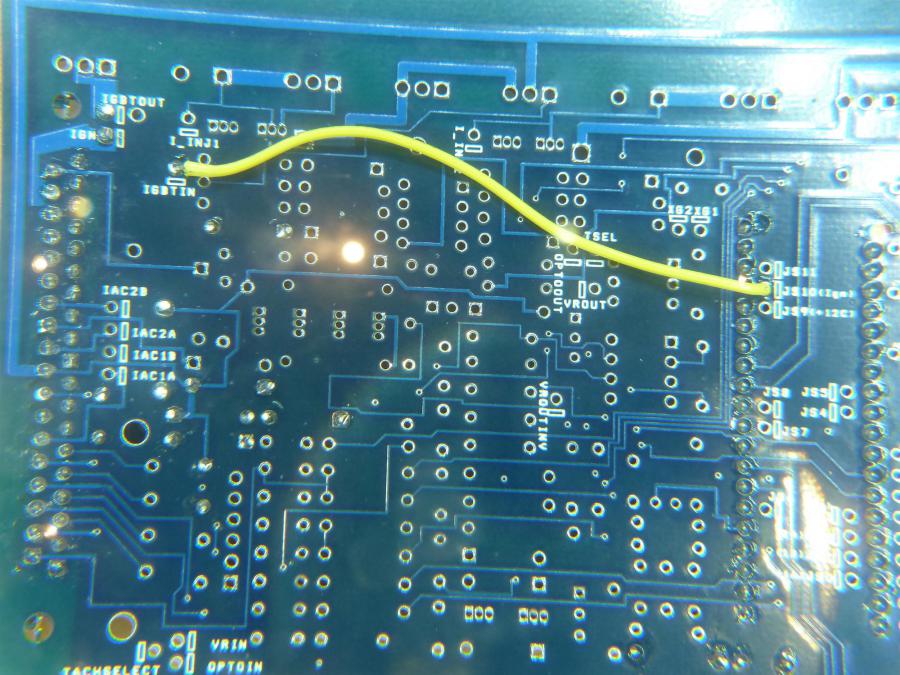 if you are going to use an IAC stepper motor with MegaSquirt-II, you must install a jumper from the hole marked S12C to the hole marked JS9 (+12C).