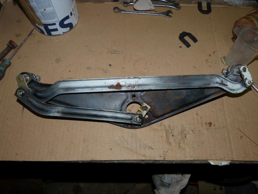 mais je me suis chargé de pleins d'autres trucs. ensuite préparation à la peinture de pleins d'autres trucs pédalier, essuies glaces, repose pied et support de pare chocs remontage du pédalier Mécanisme d'essuie glace