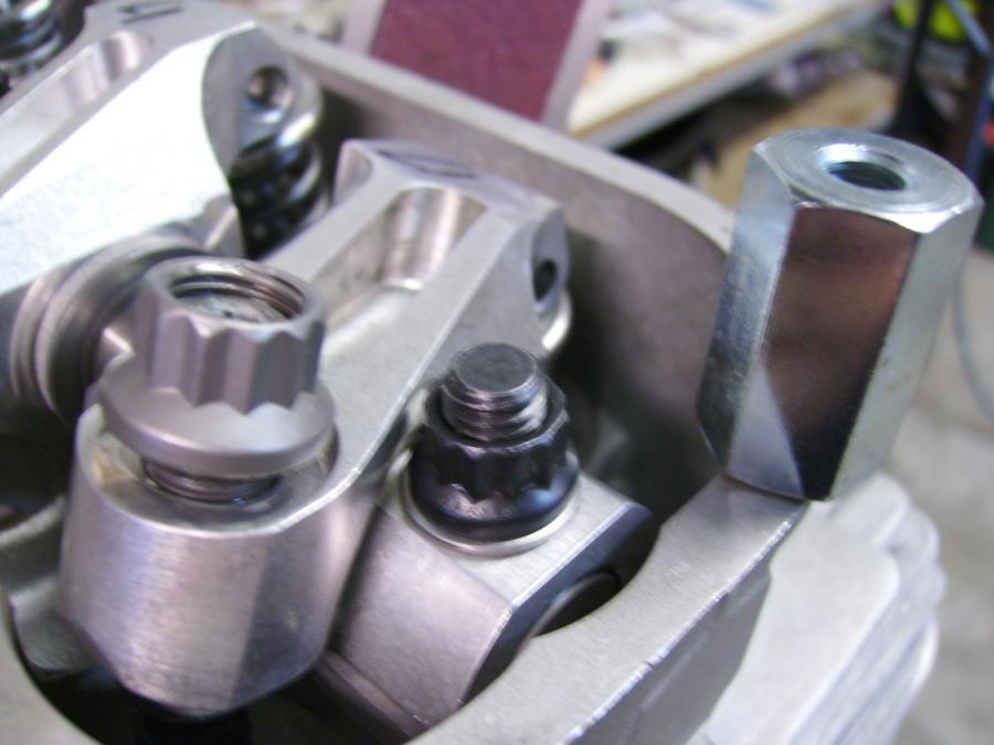 Je me suis attelé à vérifier la géométrie de distribution, pour ce faire j'ai du monter des lash caps sur les queue de soupapes et usiner les piédestal des culbuteurs pour retrouver une bonne géo.