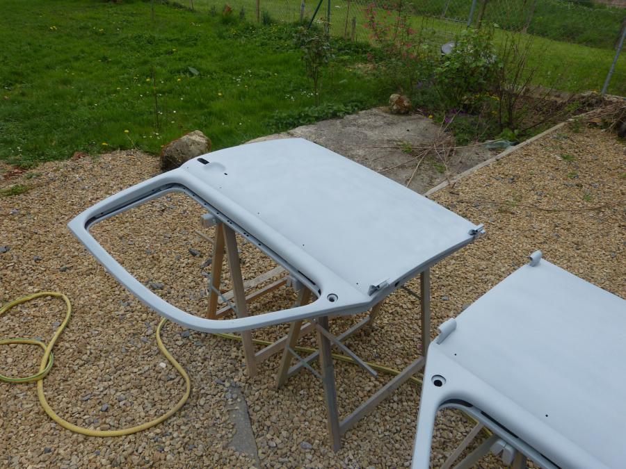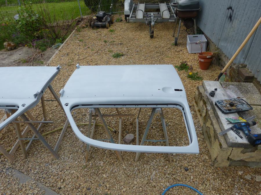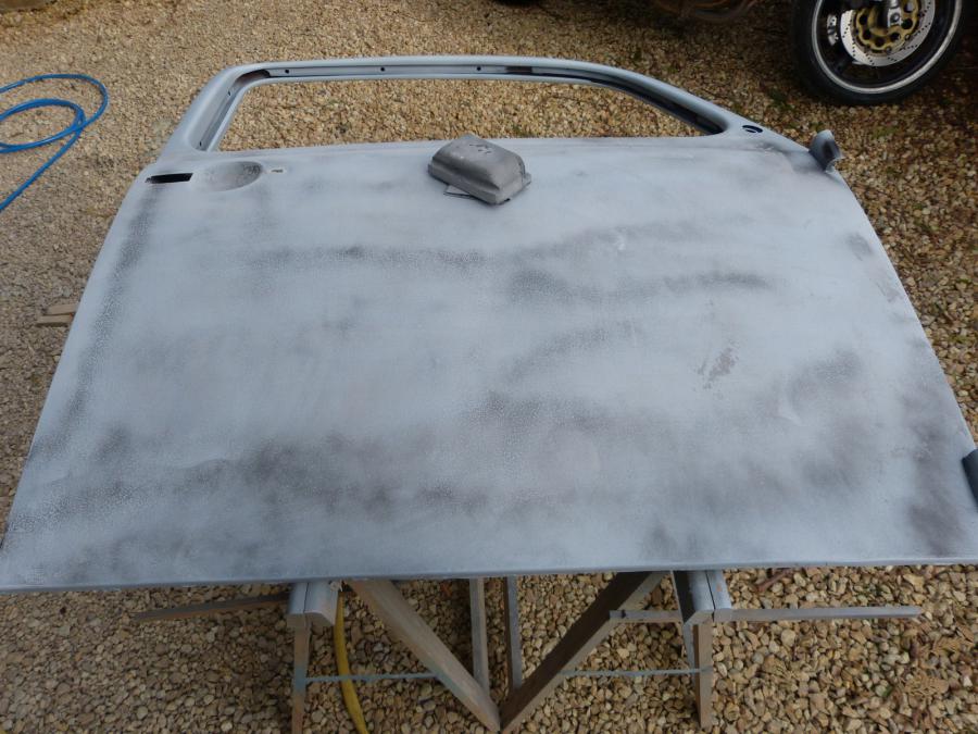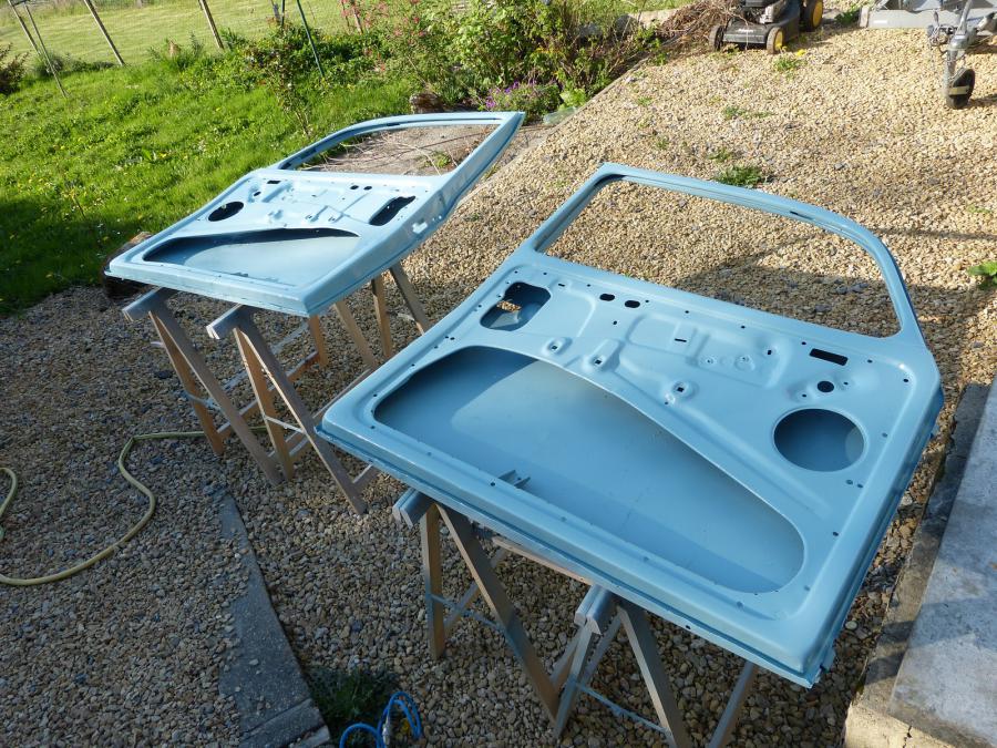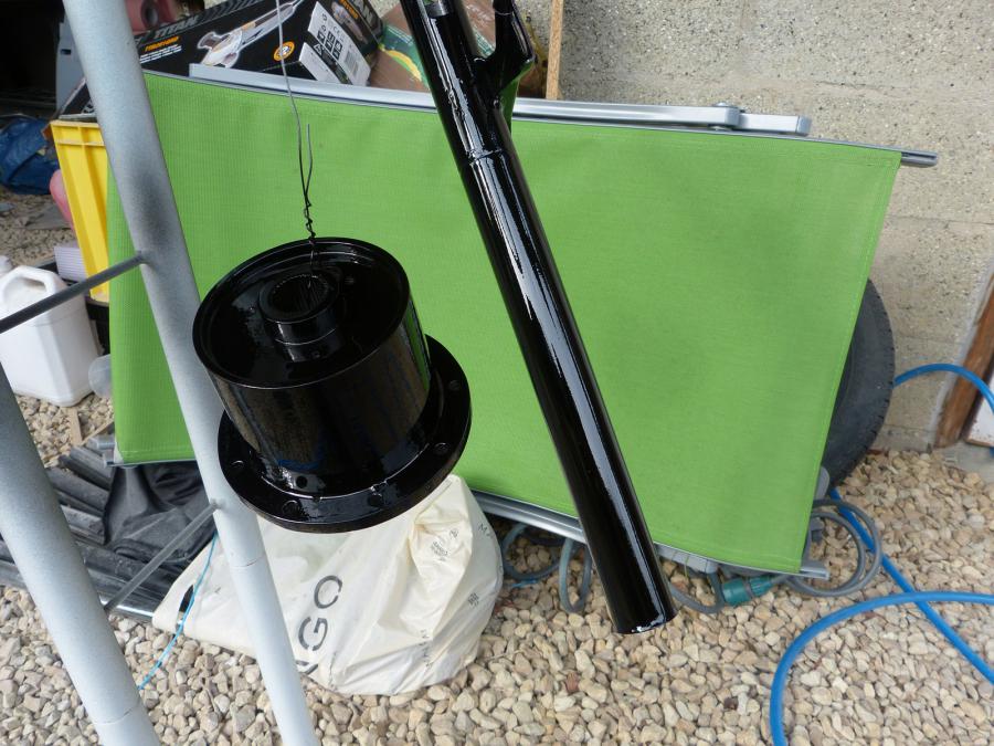 moye et colonne de direction en noir un coup de noir pour révéler les derniers défaut des portières, je ferais quelques mastics de finitions et reposerais une dernière couche d' apprêt garnissant hier j'ai posé mes deux couches de peinture sur la face intérieur des portières