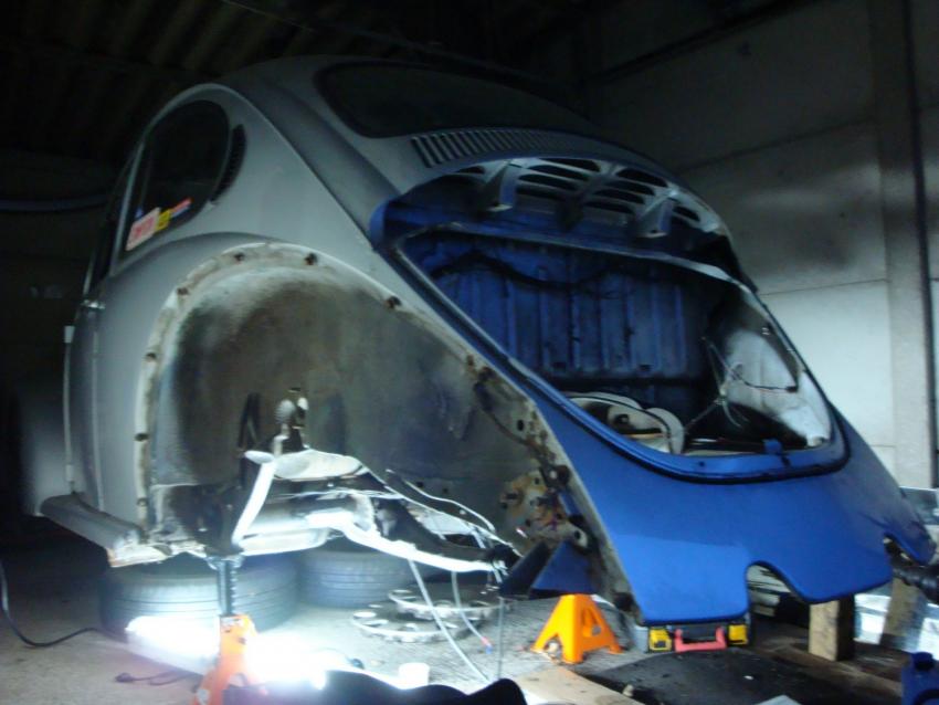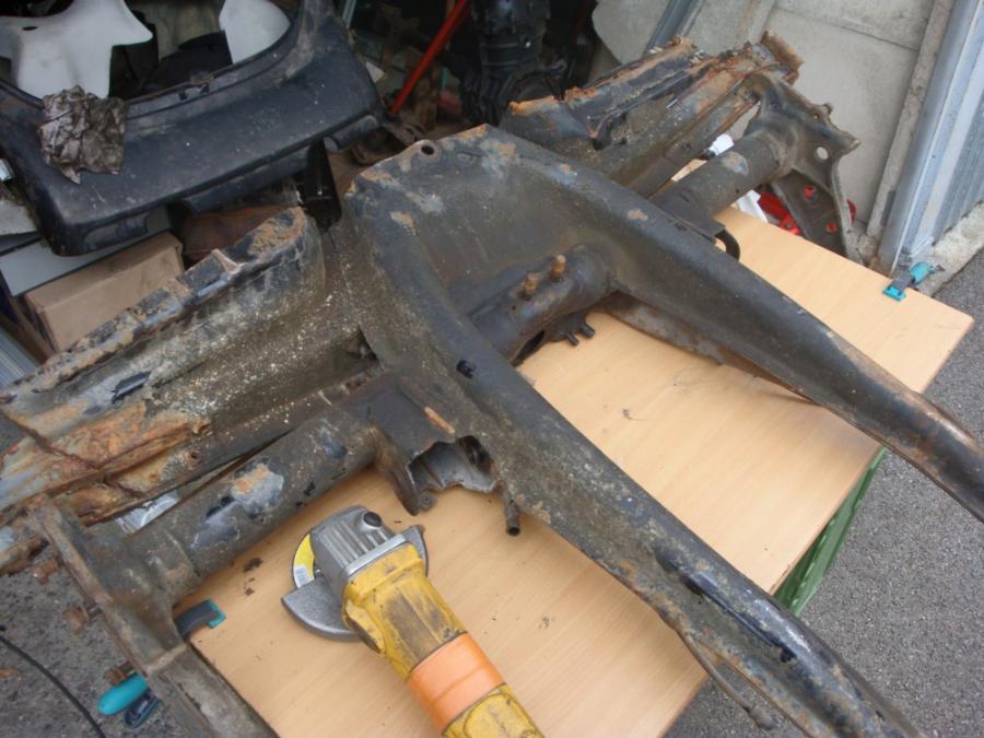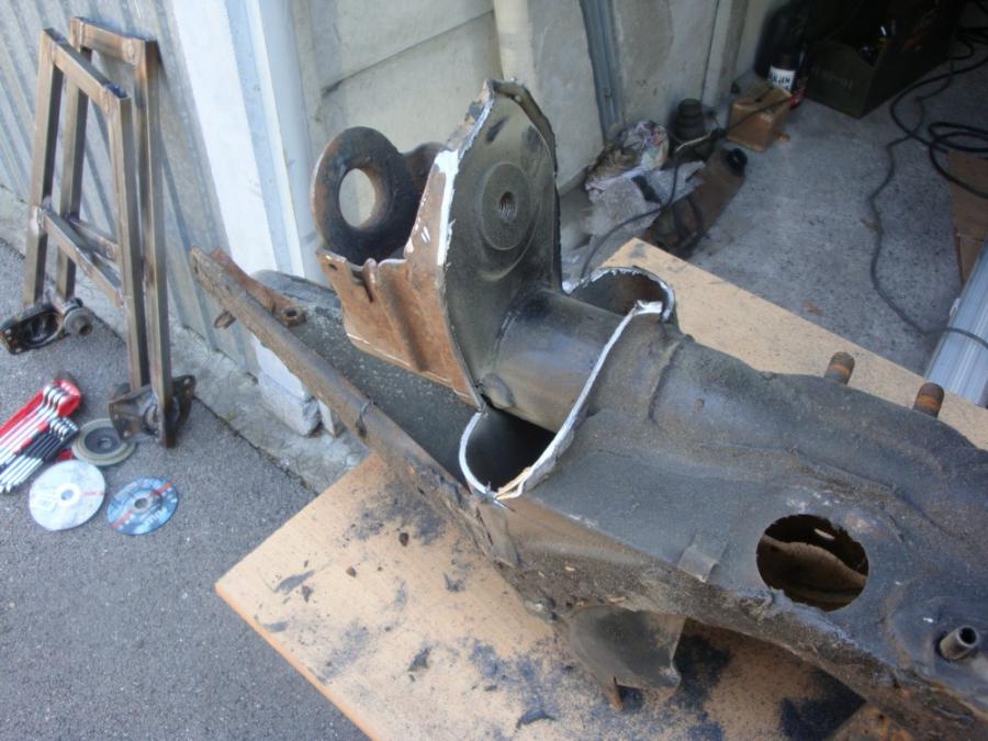 Du coup j'ai fini de virer les bouchons des logements de support de bras Et comme la meuleuse est mon amie, on à pas réussi à s'arrêter là: On à viré la jupe et fait un petit montage juste pour se donner la motiv'...