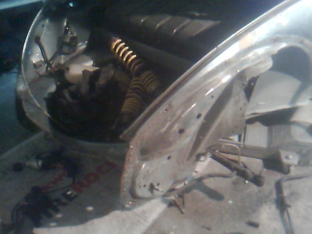 Tout l'intérieur est fini pour rouler, le châssis est "semi-stock" grosse barre stab AV AR, mes jambes de force, des barre 944 AR, 4 Parada, des plaquettes DS3000 à l'av et gros cylindres AR (modif merdique à souhait soit dit en passant, j'ai perdu 3 semaines pour purger). Voilà, rien que bien transcendant, juste de quoi rouler sereinement sans se faire mal, ça ira mieux quand elle sera passé à la géo, je ne vais pas trop me casser la tête à la régler parfaitement, elle ne roulera pas très longtemps dans cette config, juste quelques mois histoire de laminer les parada. Une modif pseudo MC pherson est prévu-cadrée (avec des tirants de silvia mais j'en dis pas plus), les pièces manquantes pour les fusées porsche sont finis sur papier, plus qu'à faire faire.