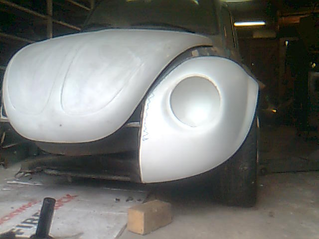 Voilà, elle n'est pas peinte, les mastiques sont posés, certains ne sont même pas poncé car je n'ai plus le temps du tout, il y a les traces de feutre signalant les badolles sur la carrosserie, côté droit, je n'ai même pas eu le temps de boucher les trous de baguette, ça ira bien pour une journée, les jupes AV et AR post 75 sont posées avec la modif basique aéro sur l'AR kivabien pour éviter les turbulences. Le groupe AR est fini monté, les anneaus de remorquages sont monté, les clignos blanc dans le pc av aussi, les feux german derrière et tout un tas de bordel que je n'énumèrerai pas car pas le temps de m'en souvenir, à dire vrai, je suis en bleu, je passais juste prendre un renseignement pour le branchement du coil-pack ford et je viens de saloper entièrement le clavier avec les mains bien dégueulasses..... Et en plus vous n'aurez même pas le droit d'avoier une passe de correcteir d'orthographe.