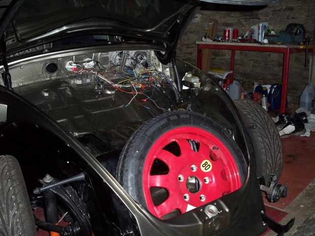 reste plus qu a mettre le radiateur d huile , la moquette , changement des sièges par des rs, mise en place des jantes 993 qui sont en peinture et peinture de l arceau