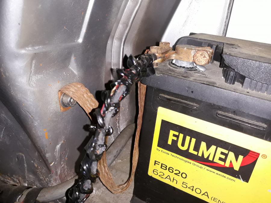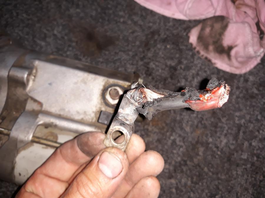 C'est un câble grosse section que j'ai rajouté. La cosse s'est dénudée à force de bouger. Mais surtout j'ai du la monter à l'envers car je l'avais tordu pour éviter ça...