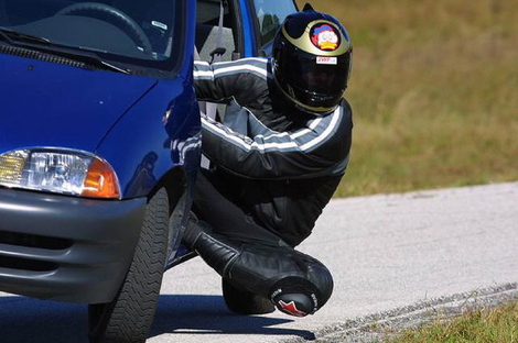 Une vielle astuce sécurité pour tous ceux qui roulent comme des ânes sur route ouverte et sans protection, si vous n'avez pas de combinaison ignifugé (en gros combi de pilote), roulez en jean c'est l'une des matières qui résistent le plus longtemps aux flammes lors d'un feu et ça peut éventuellement sauver un membre de brûlures très importante lors d'une extirpation rapide d'un véhicule en feu.