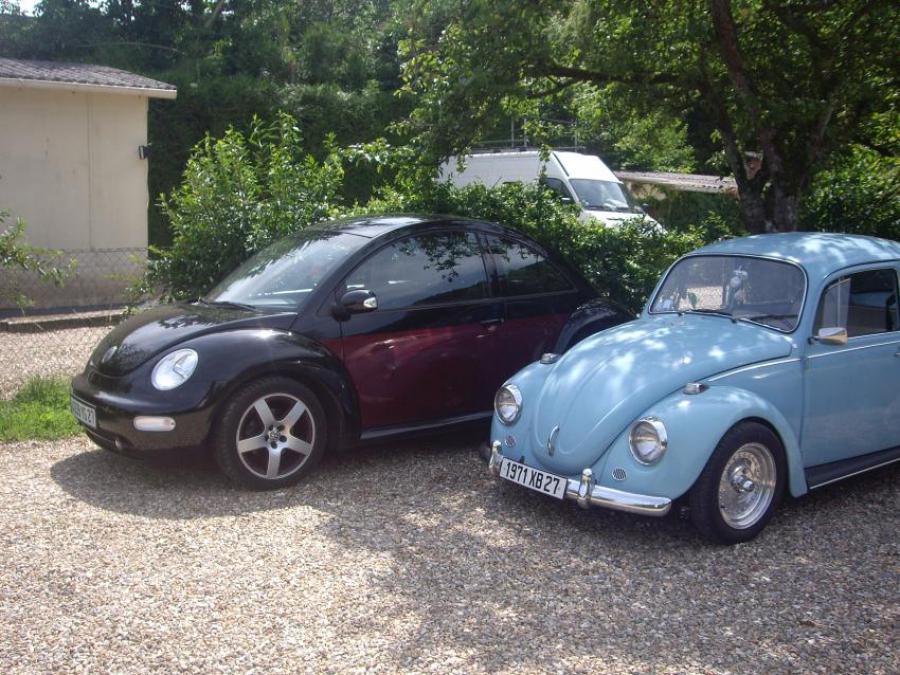 bonjour tout le monde, je m'appel michael j'ai 28 ans je suis de la normandie, je roule en new beetle domingo et je possede une cox 1200 de 71 premiere main que j'ai eu a 104000kms d'origine en 6 v avec les annees j'ai fait pas mal de modifs dessus: