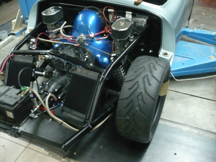 T4 2,5l ex buggy drag bleu avec collecteur sur mesure par mes soins, boite rancho qu’on a ouvert pour inverser le diff,
