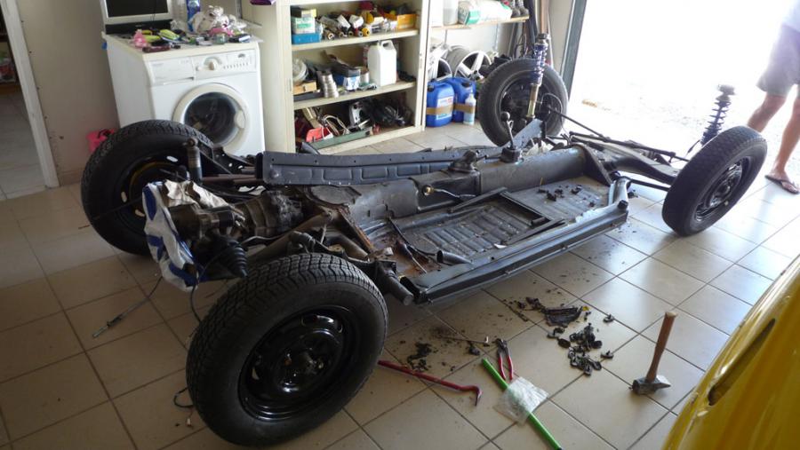Un beau longeron pourri, le deuxième est pareil, un peu de corrosion non perforante sur le chassis etc... Que du classique quoi :biggrin:
