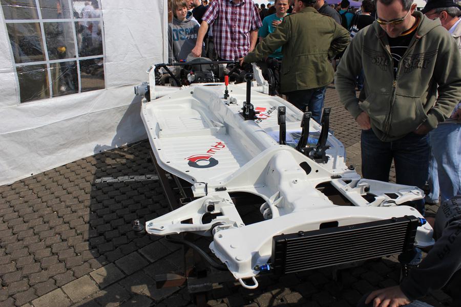 Chassis MBT que j'ai hyper détaillé en photos. Il faudrait que j'ouvre un post. Apparemment, triangles Renault Megane/Clio, mais les fixations nous ont parues un peu légères...