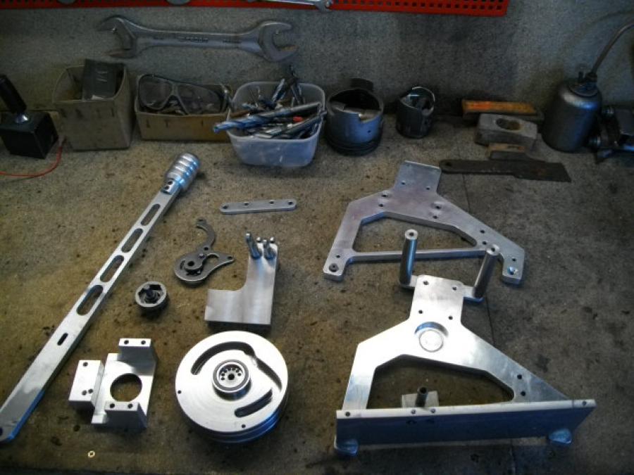 là je prépare la boite et les trains roulants ( freinage , rigidifier le train ar et boite , adaptation d une crémaillère a la place du boitier .... )