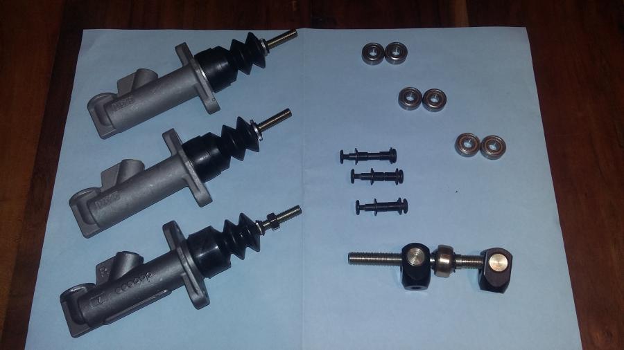 Le petit projet est en train de naitre! Avec du mieux que tout fait, puisque les pédales sont réglables avant/arrière, l'inclinaison des pédales est possible. Le cable d'accélérateur s'adapte de plusieurs façons. Et le tout utilisable avec du matos (maitre cylindre, répartiteur) standard du commerce.