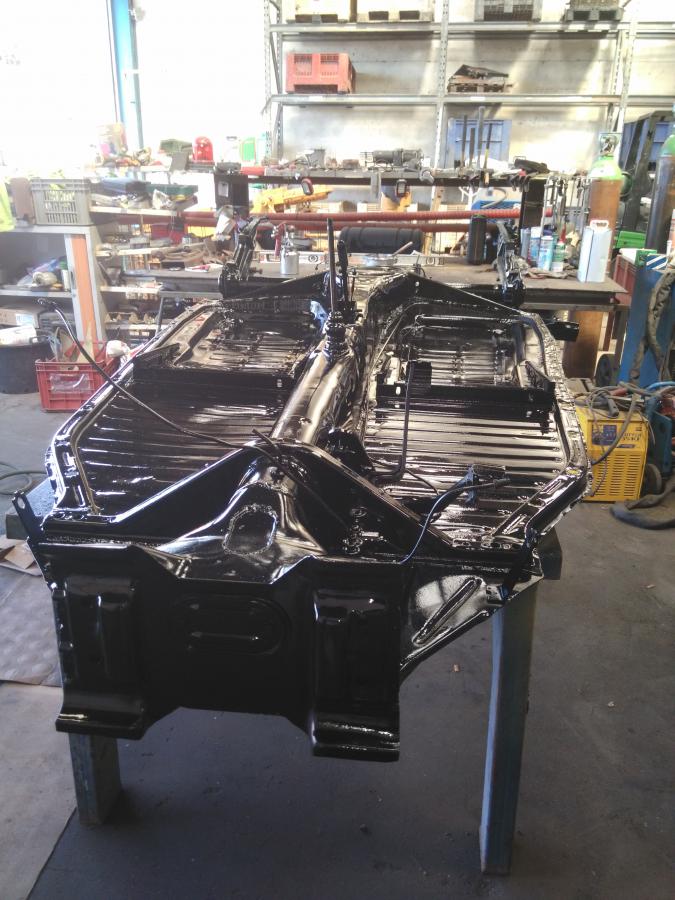 J ai pour l instant sabler chassi train avant et arrière plus la boîte, passer un appret phosphatant et peinture anti rouille.