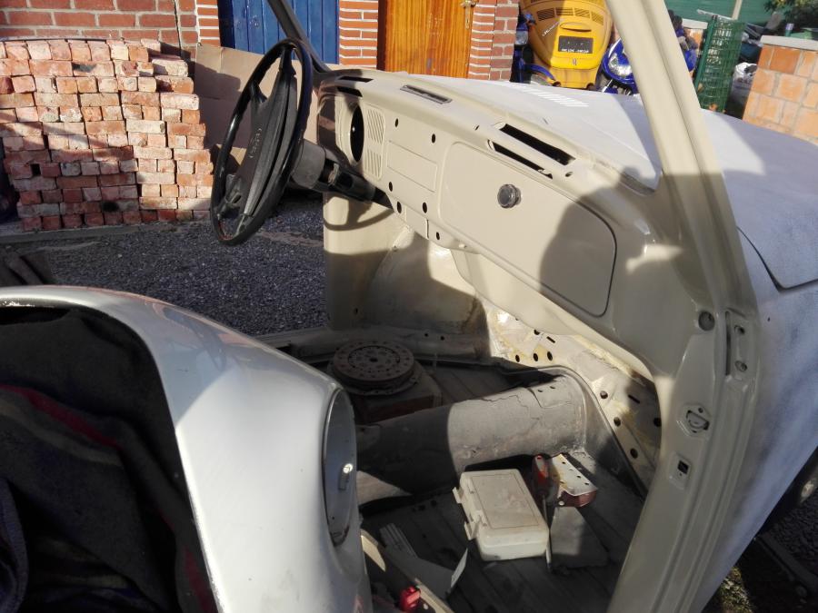 Manque le ciel de toit, les bas de marche, le moteur et boîte. Et remettre des joints neufs au remontage.