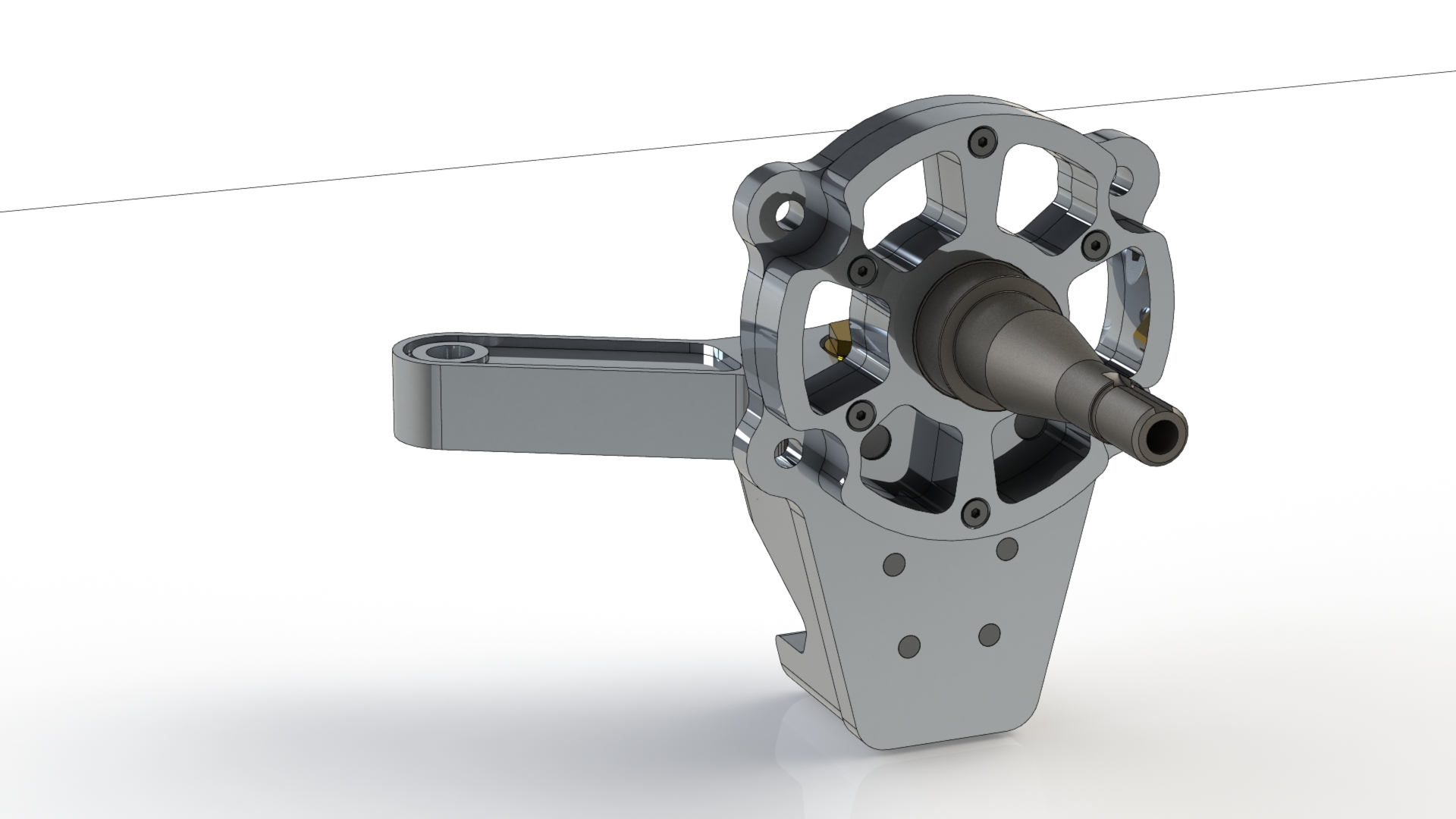 Avec l'aide d'un technicien issu du sport Auto nous avons dessiné un porte fusé pour train avant à rotules qui apporte un certains nombres de solutions innovantes
