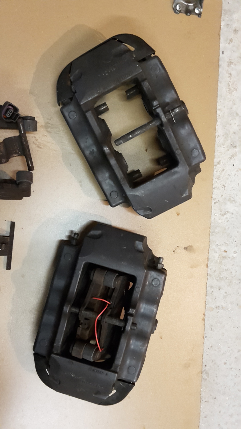 - 2 étriers de Cayenne, Brembo, 4 pistons, plaquettes usées à 40%. Fixation axiale. 150€