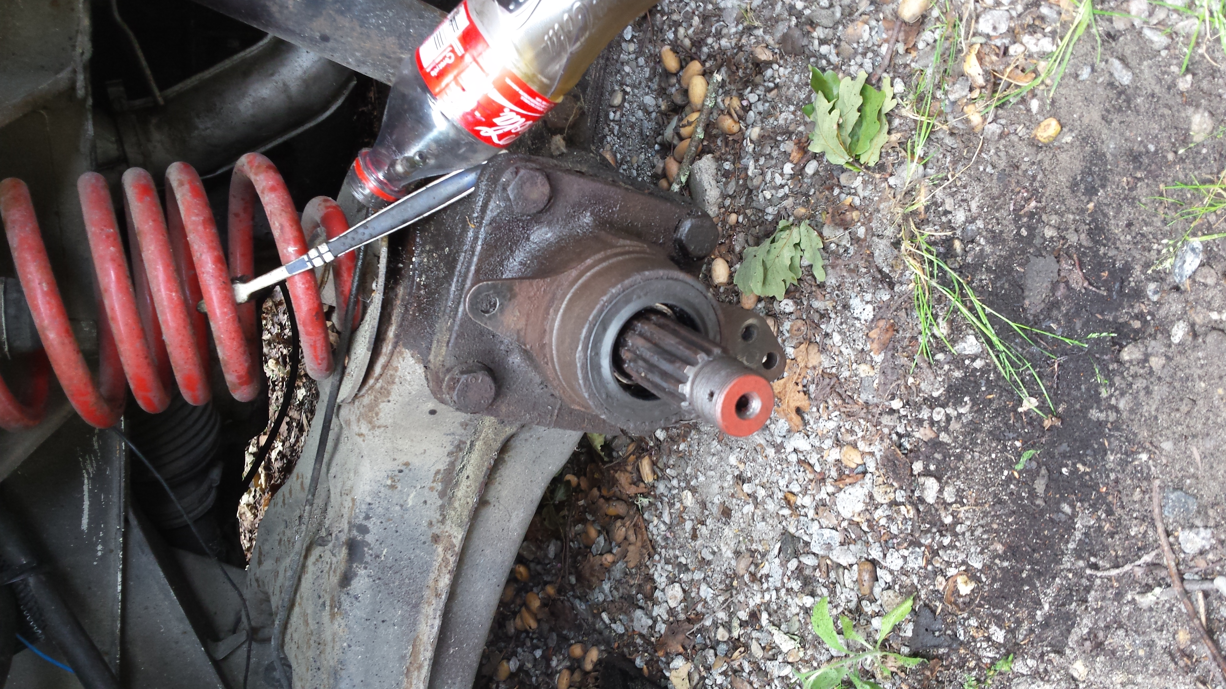 Ensuite vient le démontage de l'ancien démontage et comme beaucoup je me suis retrouvé avec un écrou de moyeux récalcitrant... Beaucoup de WD 40 une douille de 46 et carré coullissant poids lourds et une bonne rallonge et c'est venu !