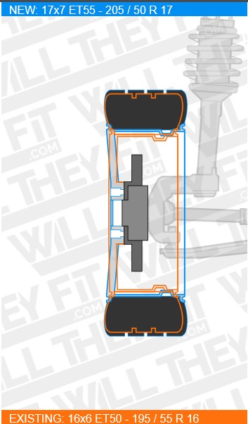 Dans l'immédiat, je vais remplacer les roues arrières, les 195/55/16 sont plus petits que des pneus d'origine. J'ai 2 jantes Boxster de 17 pouce en 7 pouce de large, équipé de 205/50. Elles devraient rentrer sous les ailes d'origine.