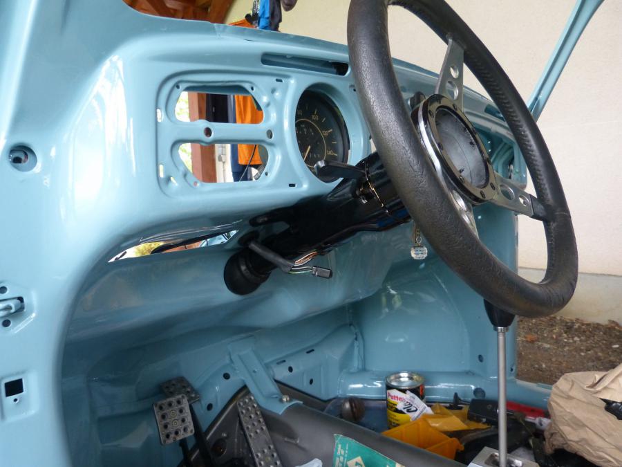 Donc il étais prévu au programme refection totale du faisceau électrique, soudure mastique apprêt et peinture du capot avant, démarrage du moteur, et remontage au maximum de la voiture.