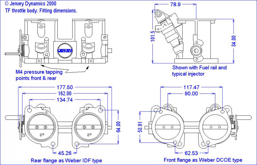 "All types of throttle bodies have a flange with the Weber DCOE - hole pattern for the fastening on the intake manifold."