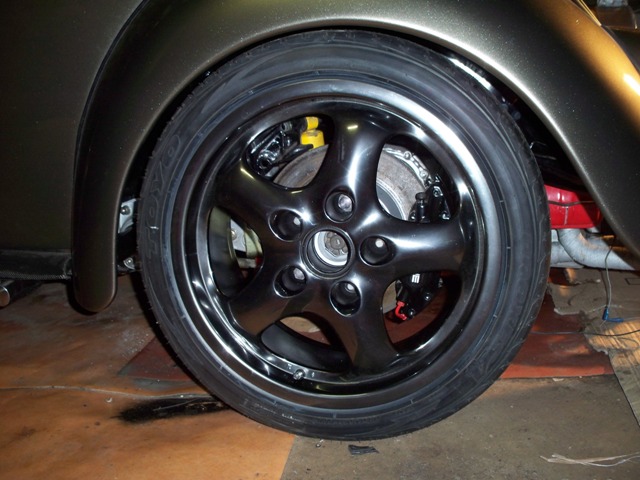 voila mise en place des pneus ca passe pile poil le train avant est en cour de remontage