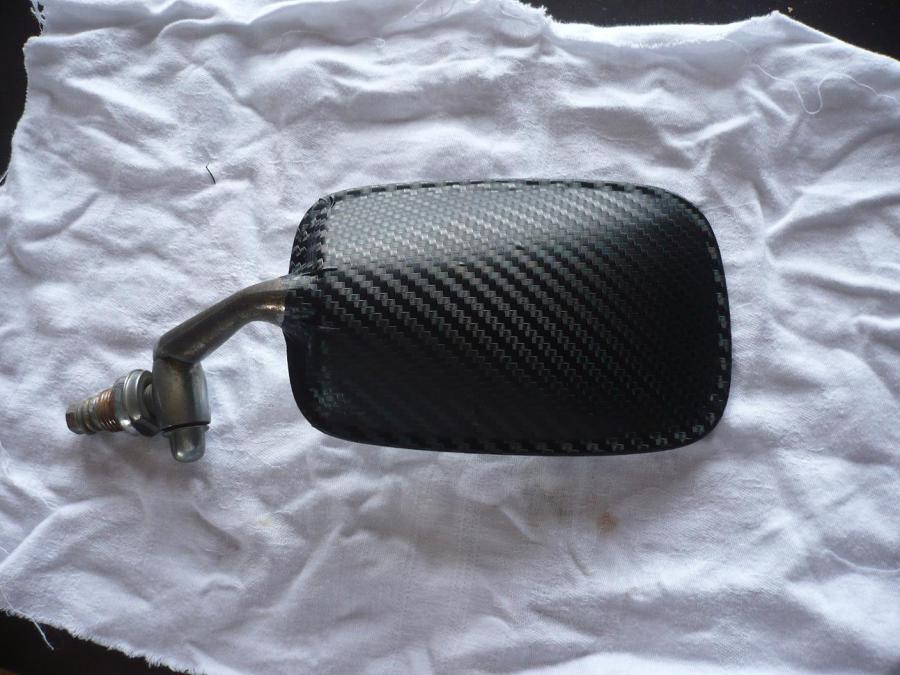 Ensuite, au niveau look, un essai de carbon fake pour cacher le mauvais état des chromes actuels... C'est pas vraiment bien posé, la came made in China n'aidant pas (on est loin de la qualité du Di Noc de chez 3M) :roll: mais le rendu visuel à quelques mètres est sympa...