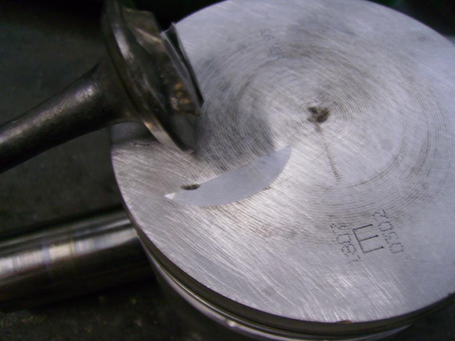 Les pistons étant bien marqués j'enlève la bavure et je sors mon outils fait maison pour pratiquer un lamage sur la tête de chaque piston on sait jamais si ça recommence peut être que ça ne touchera pas ce coup ci!
