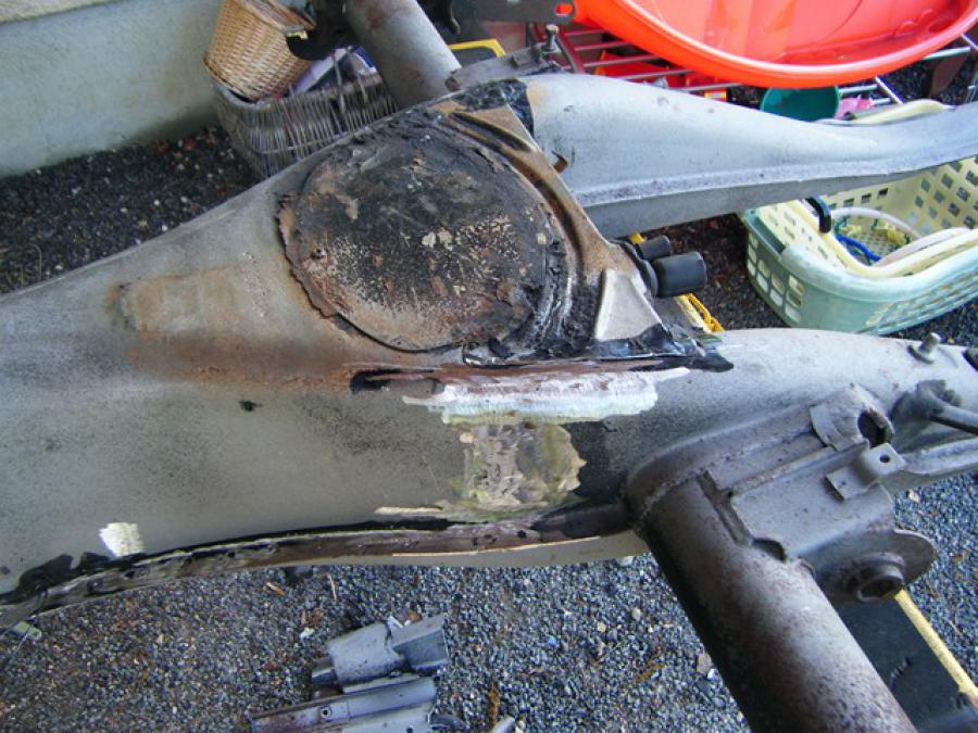 Ensuite aprés que le chassis soit resté sans aucune protection antirouille pendant un an je me décide à lui faire sa fête