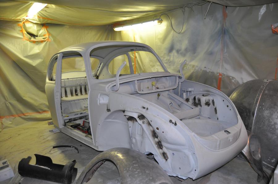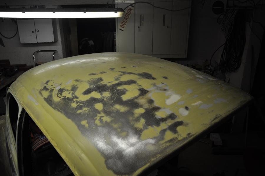 la base: achat caisse + chassis 1303 1973 en cours de restauration ponçage du pavillon qui presenté encore quelques legère bosse puis le reste pour finalement tout reponçer et sabler les endroits plus difficiles