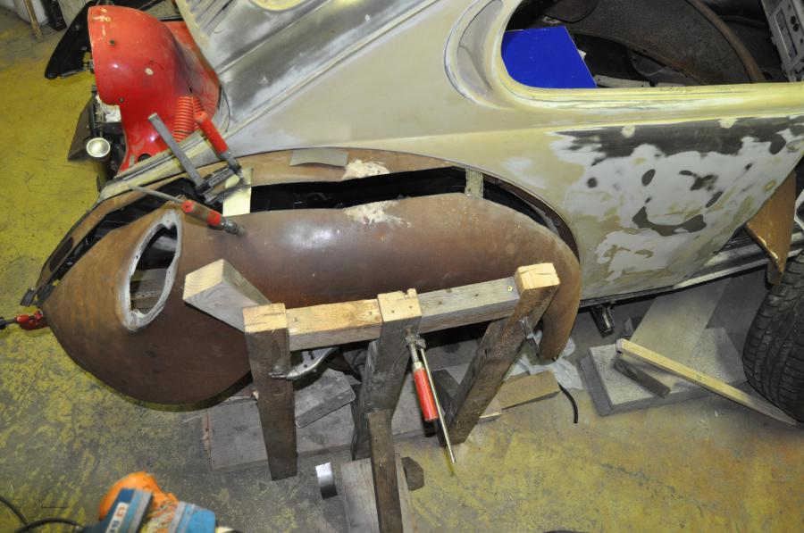 entre temps essai pour elargir les ailes arrieres (avec des ailes en très mauvaise état on en profite pour remplacer ceraine tole percer par la rouille