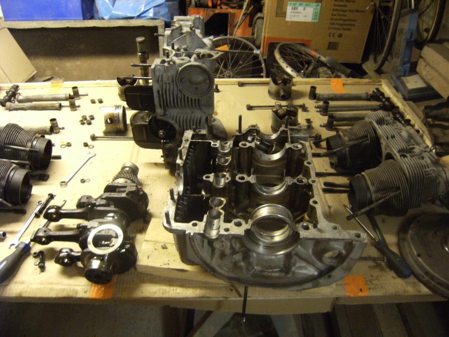 donc chenillages et renfort d'angles de porte (tole faconné à froid 2mm épaisseur) réfection des jantes porsche boxster ,les 4 sont en 7'' par 17'' avec 2 cales 20mm alu pour l'arrière et le moteur? achat d'un type 4 porsche 914 1700cc (equipé turbine porsche ) ce qui entraine un démontage pours sa réfection début préparation des culasse (suppression bosselage echappement) ensuite j'ai envoyé le bloc vilo ,bielle,piston etc pour le controle des cotes